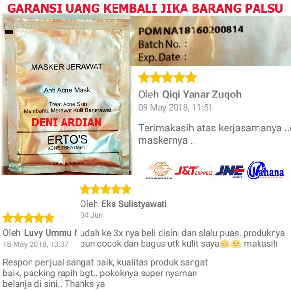 Bpom ertos masker jerawat ertos clay mask mencegah jerawat menghilangkan bekas jerawat, rp20.000.